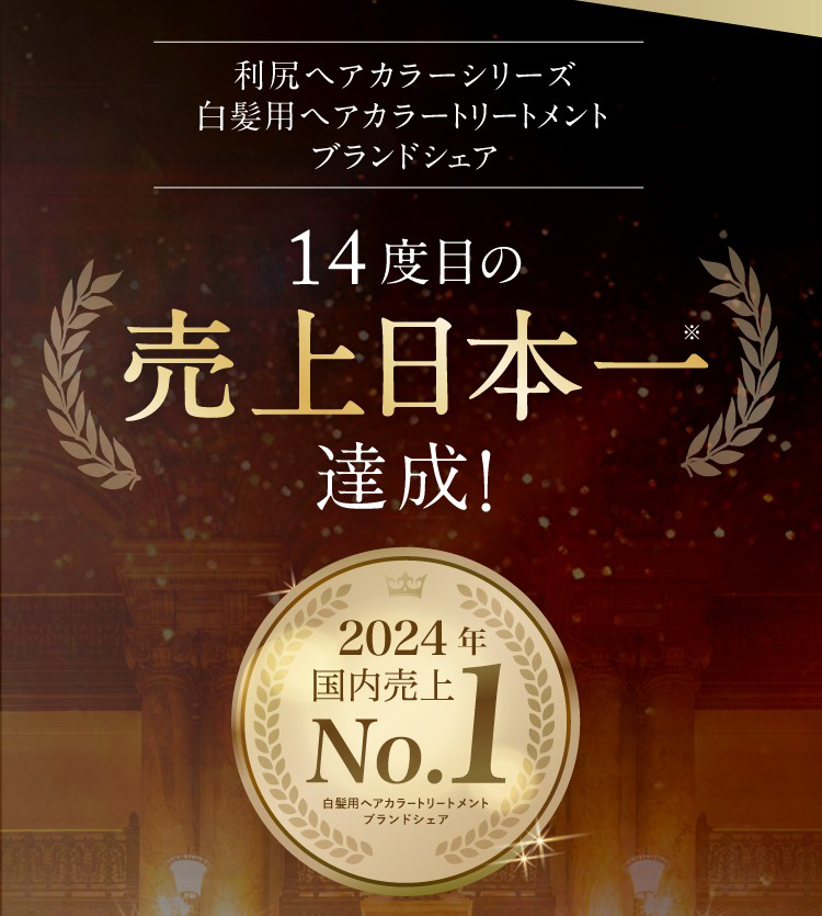 ※2利尻ヘアカラーシリーズ/白髪用ヘアカラートリートメントブランドシェア2015〜2024年全国第1位。